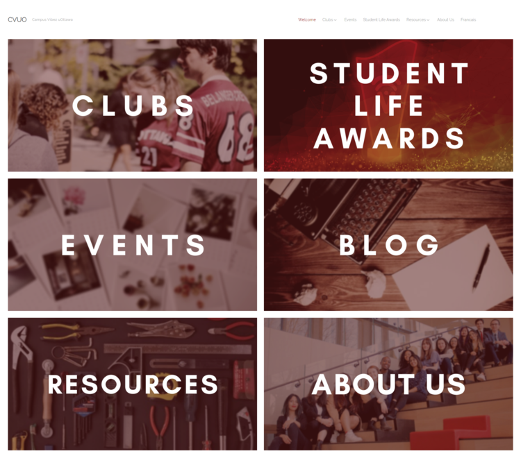 Campus Vibez uOttawa, also known as CVUO, is an organization that operates at the University of Ottawa. Their website was meant to give students access to multiple resources, as well as act as a place for blogging, event promotions, and a giant list of items each with their own descriptions, pictures, descriptions and links. The site would have more than a thousand different pages and over 20 different unique designs.